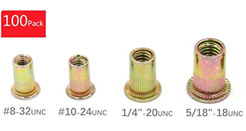 iExcell 100-Pack #8-32UNC #10-24UNC 1/4"-20UNC 5/16"-18UNC Assortment Yellow Zinc Plated Carbon Steel Rivet Nut Flat Head Insert Nutsert