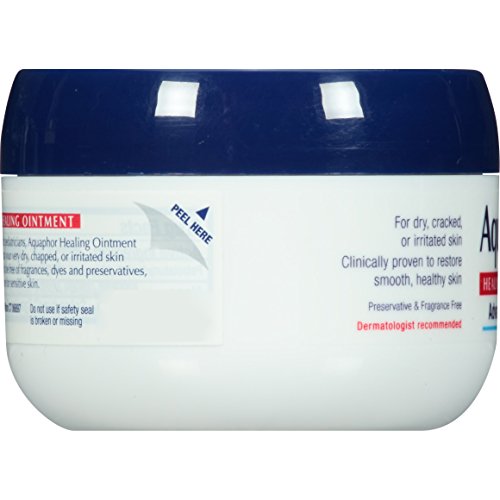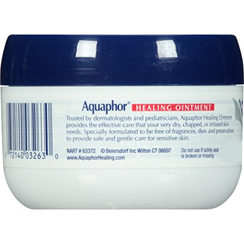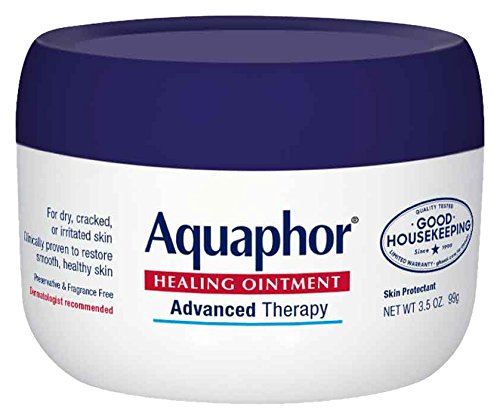 ReleaseDate : 2006-11-08 Studio : Aquaphor Publisher : Aquaphor Binding : Health and Beauty Product Description Aquaphor Healing Ointment is a multi-purpose ointment that effectively relieves dry, cracked, chafed, chapped or irritated skin and protects to help heal minor cuts, scrapes, burns and wind burn. It works great on cuticles too. Dermatologist and pediatrician recommended, it is clinically proven to help enhance healing and restore smooth, healthy-looking skin. Aquaphor Healing Ointment Advanced Therapy is fragrance-free, preservative-free, and dye-free, so it is appropriate for sensitive skin. The unique formula with glycerin, bisabolol (chamomile essence), and provitamin B5 moisturizes, soothes, and protects to enhance healing. Use it to protect skin from dry, cold weather and frequent hand washing, or to protect chapped, cracked skin, minor cuts, scrapes, and burns. 0