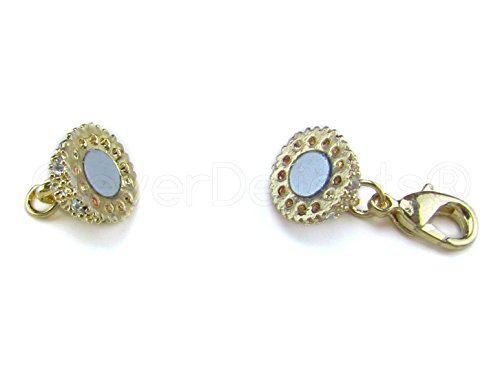 8 Sets - CleverDelights Magnetic Jewelry Clasps - Rhinestone Ball Style + Lobster Clasp - Gold Color