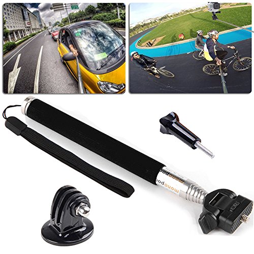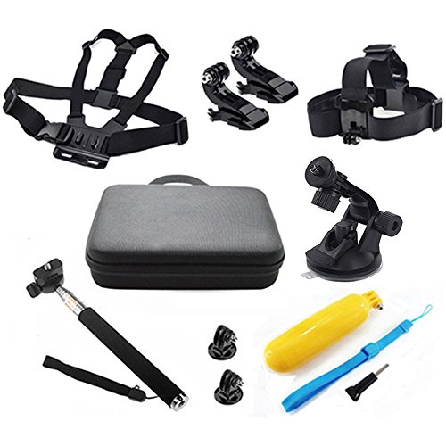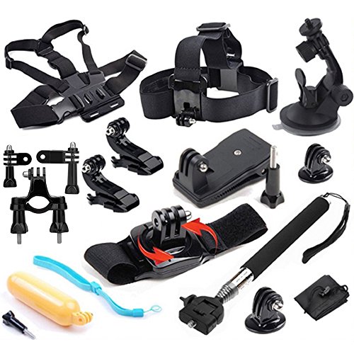 Item Description Gopro Accessories Basic Kit (21 in 1) Perfect for skiing, surfing, biking,riding,sking boating, fishing,hiking and other action outdoor sports, Meet most of your needs for Supporting Accessories when you are taking photos or video with your GoPro Hero Camera. The Monopod can work with all compact point and digital cameras that has self-timer and tripod. Floating Grip Mount is designed to keep your camera with a waterproof shell (not included)easy to float on the water. Suction cup mount can mount your device securely on your car while you are driving. can be swiveled into 180 degree as the picture shows providing more angles for viewing. The Handlebar Mount and Bike Tripod Mount can help the Gopro have a recording of the rode and those before you when riding while keeping your hands free. With 360 degree rotation Clip Mount, quick clip and remove to the waist belt, bag, safety harness, cap and other place in an easy and firm way.