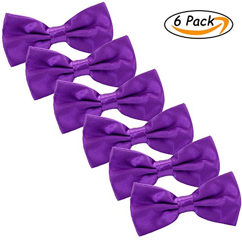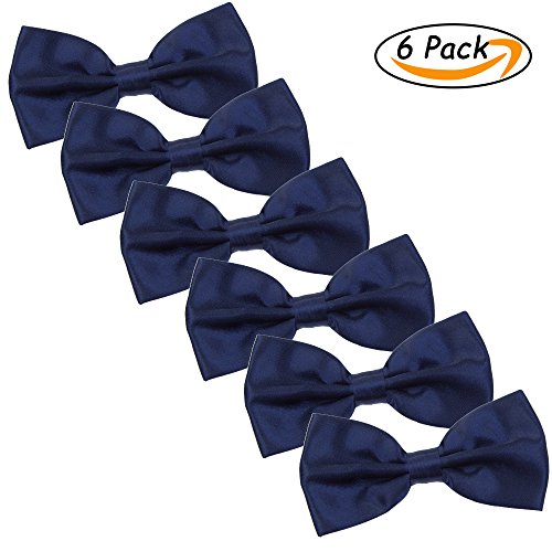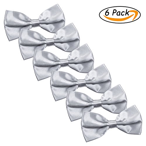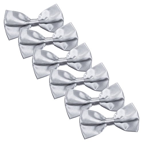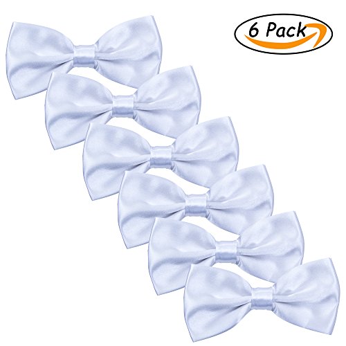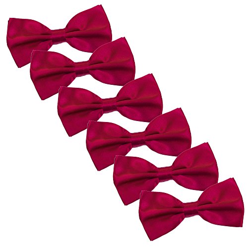 | Men's Bow Tie for Wedding Party - 6 Pack of Solid Color Adjustable Pre Tied Bowties |