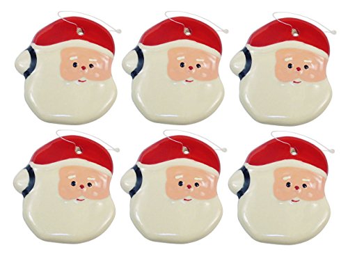 -. Binding : Kitchen -. Brand : JH Smith -. Color : White -. EAN : 0638183655344 -. Feature : SANTA : This Santa Ornament will make an adorable addition to your collection for the holiday tree trimmings. / SHINY GLAZED : Shiny glazed earthenware with hanging string. / ABLE to be personalized by adding your name or greeting to Santa's beard with a felt tipped pen. / SIZE : 3"W x 3 1/4"H. -. IsAutographed : 0 -. ProductGroup : Home -. ProductTypeName : HOME -. Title : Santa Xmas Ornament - Shiny Glazed Earthenware Christmas Ornament Santa Face with Hanging String, Great Collection for The Holiday Tree Trimmings. Set of 6. -. UPC : 638183655344