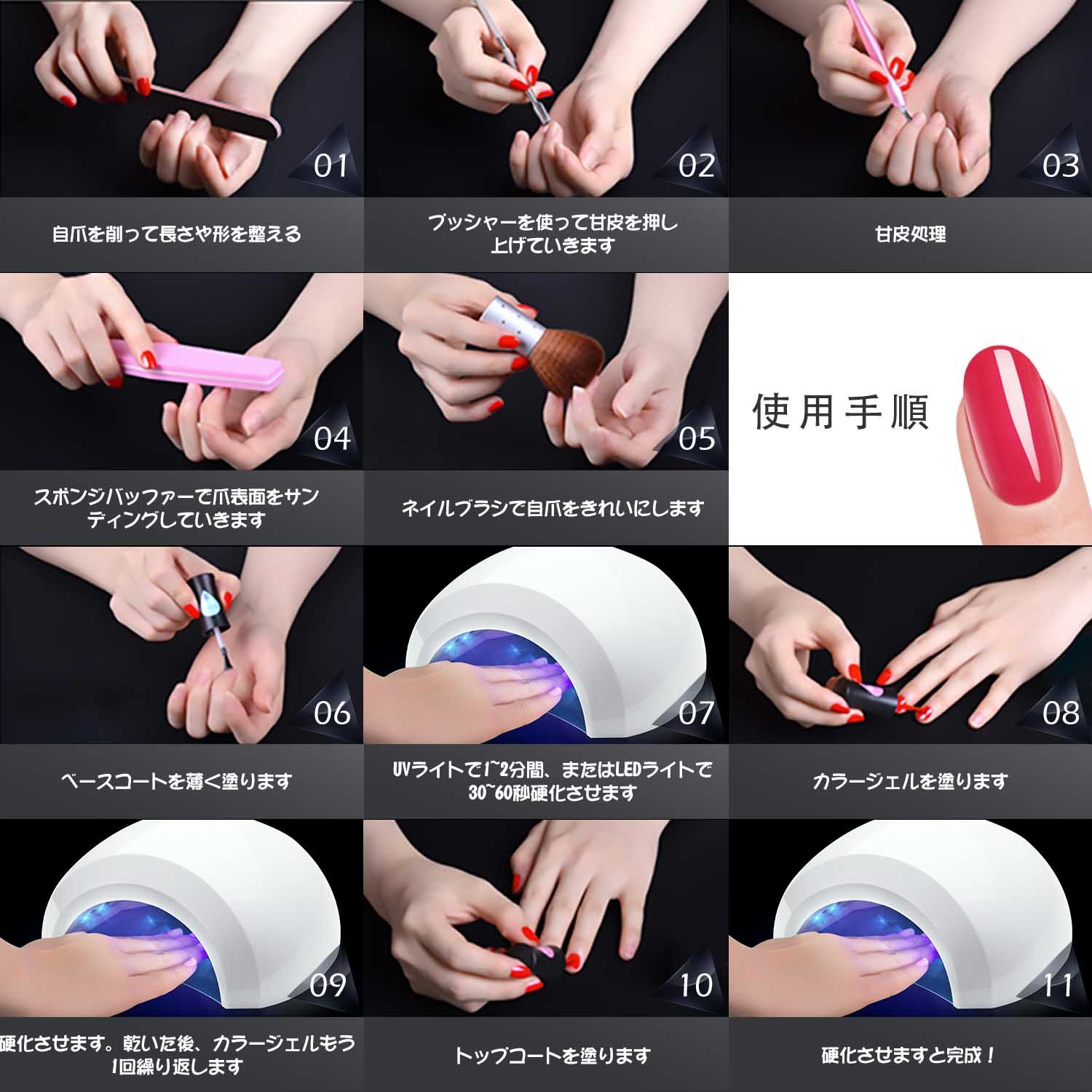 【綺麗な発色】全380色から厳選された6色セット、驚くほど美発色。 【便利な操作】理想な粘度で、初心者でも扱いやすいポリッシュタイプです。 【長い持続】正確にご使用した場合、ツヤ感二週間以上長持ち出来ます。 【安全性】ネイルと肌に優しい天然樹脂を使用、刺激臭少なく無毒で、より安心より安全。 【ヒント】LED UVライト両方に対応。