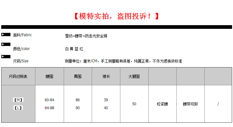 【裙裤绑带可卸,松紧腰,内有安全裤,防走光,内衬柔滑亲肤。】