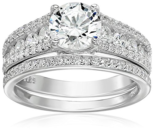 Sterling Silver Platinum-Plated Swarovski Zirconia Ring Set, Size 9