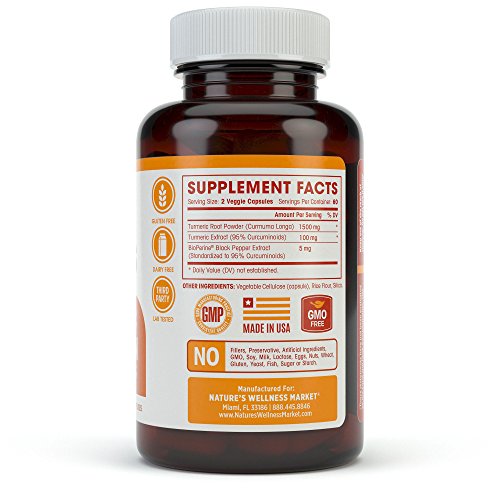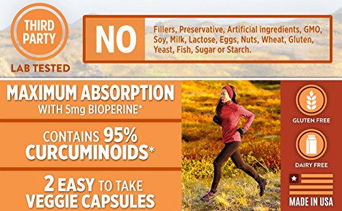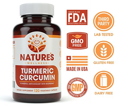 120 VEGETABLE CAPSULES | 60 DAY SUPPLY - One bottle of Nature's Wellness Turmeric Curcumin contains 120 vegetable capsules that last 60 days when taken as recommended. If you are not Certified Happy we will refund your full purchase price. Try it RISK FREE NOW!