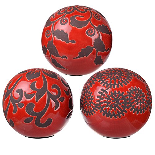 A&B Home 1159 Marbleized Ball Accents, Red Decorative, Set of 3, 4 by 4-Inch