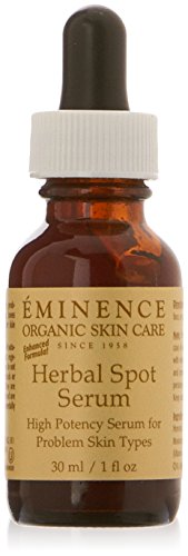 Studio : Eminence Publisher : Eminence Binding : Health and Beauty Product Description Eminence Organics Herbal Spot Serum(1 oz./30 ml)Benefits For seborreic, oily, acne and blemished skin types This serum is a high potency acne gel designed to calm and soothe irritations and inflammations due to acne This light gel assists in the healing and repairing of the epidermis Augments the skin's natural defensive processes and desensitizes irritated or sensitive areas of the skin It nourishes and regenerates the epidermis with all natural ingredients such as rosehip, willow bark, and pectin Features Horsetail and anise reduce swelling and calm inflammation Walnut Leaves have been added to act as an astringent to tighten poresEminence Organics is a highly effective, entirely organic skin care line. With all naturally organic ingredients these hand-made products are effective and extremely healing. Rich in vitamins, active ingredients and nutrients, Eminence products will give you immediate results that you will see and feel. 0
