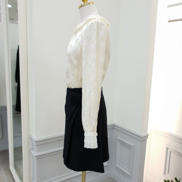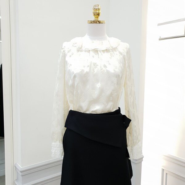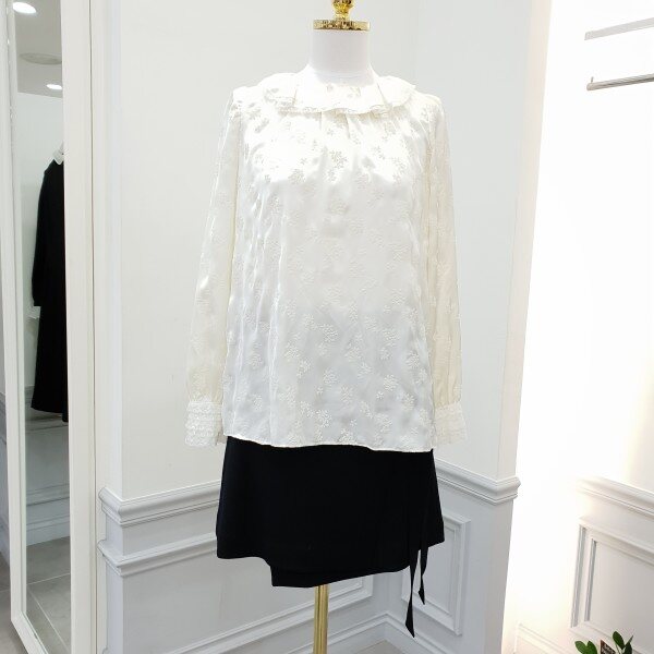 고급스러운 후로킹소재에소맷단띠레이스디테일로 섬세함을더했습니다~♡♡신축성은없으나 흐르듯뚱뚱해보이지않게 편안한핏입니다
