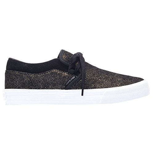 Product DescriptionClassic SUPRA DNA revamped for improved durability and skateboarding performance. This low top slip-on features a clean vamp, minimal collar padding, and optional rope laces all built atop a traditional vulcanized sole.0