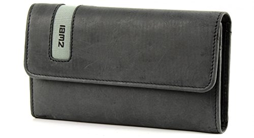 Geldbörse wird mit Druckknopf geschlossen11 Fächer für Kreditkarten, EC Karten, Visitenkarten etc.3 Seitenfächer für Personalausweis, Kalender, Bilder etc.1 Sichtfach2 Geldscheinfächer1 Zipperfach für Münzgeld / Kleingeld1 Einschubfach für Einkaufswagenchip, Plektron, Speicherkarte etc.Außen ein weiteres ZipperfachDas zwei Logo ist gut sichtbar eingearbeitet