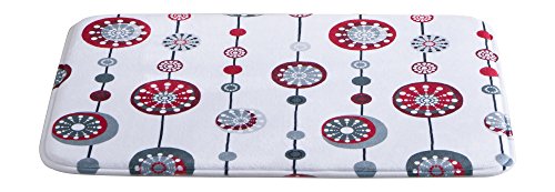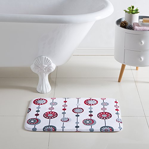 Decorative Bath Mat: Holiday String Snowflake Medallion Design with Border, Gray Burgundy Red, White (17" x 24" inch)