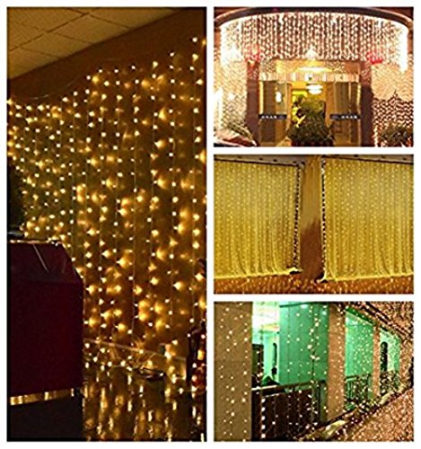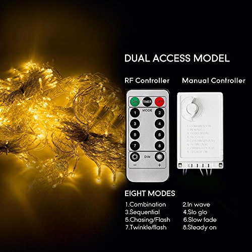 Bjour 600 LEDs Curtain Icicle Lights Christmas String Fairy Light Low-Voltage with 8 Lighting Modes RF Controller, Warm White