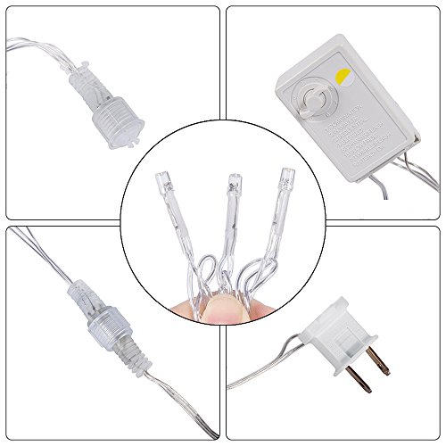 - Specifications: Plastic + Copper (Material); 600 LEDs (LED Quantity); 20ft Length x 10ft Width (Dimensions); Warm White(Light Color); 6W (Wattage); 24V (Low-voltage power supply); IP44 (Waterproof for both indoor and outdoor)