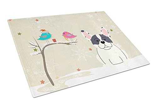 Caroline's Treasures BB2483LCB Christmas Presents Between Friends French Bulldog Piebald Glass Cutting Board, Large, Multicolor