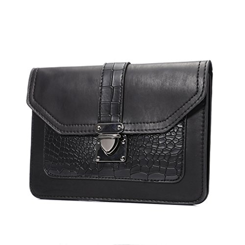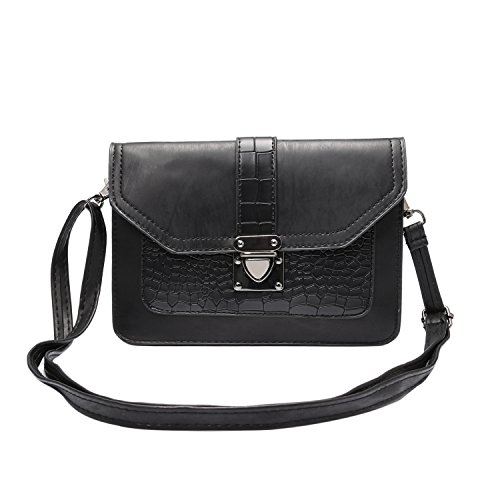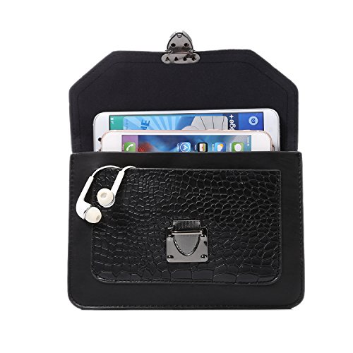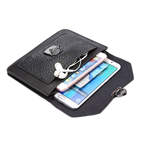 Imymax Mini Vintage PU Leather [Stone Pattern] Cell Phone Crossbody Bag Purse with Shoulder Strap [New Style] for iPhone 6 6S Plus Samsung S6 S7 Edge Note 5/4 and More Smartphones (Horizontal - Black)