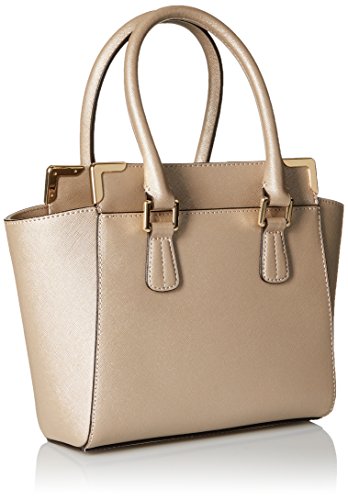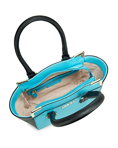 Top-handle satchel featuring contrasting gusseted sides and adjustable/removable cross-body strap