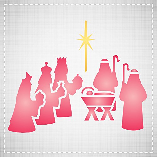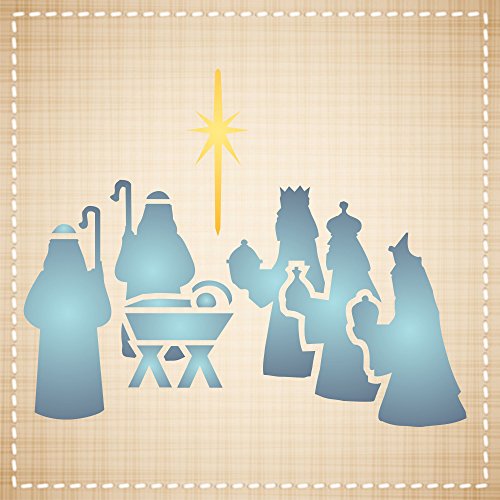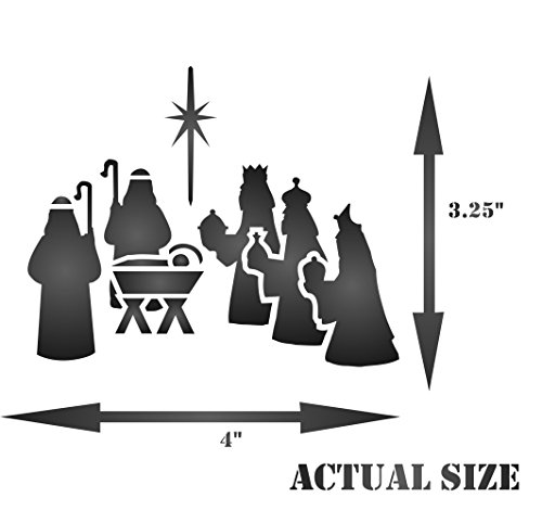 CHRISTMAS NATIVITY STENCIL (size: 3.25"w x 4"h) Reusable Stencils for Painting - Best Quality CHRISTMAS CARD Ideas - Use for SCRAPBOOKING, Walls, Floors, Fabrics, Glass, Wood, Cards, and More…