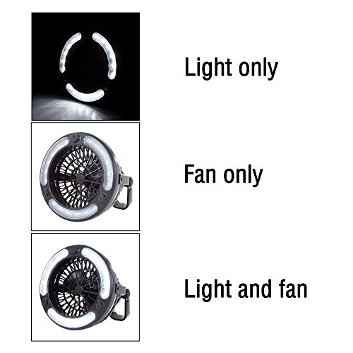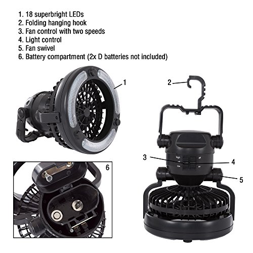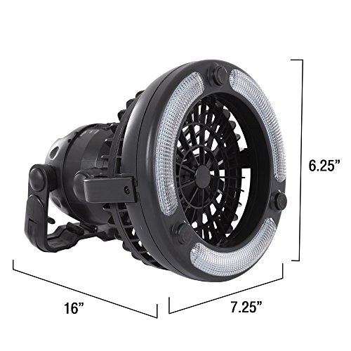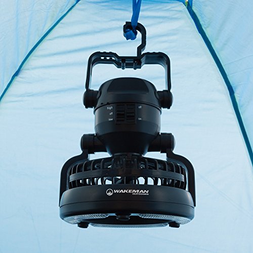 ADJUSTABLE FAN AND LANTERN – The Wakeman Outdoors Camping Lantern features both high and low speed settings to offer ambient cooling or a consistent breeze. In addition, it can provide up to 50 hours of fan power at low speed, 30 hours at high speed, or 16 hours at low speed with lighting.