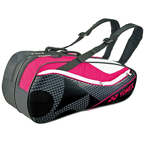 A racket bag that can hold up to six tennis rackets.