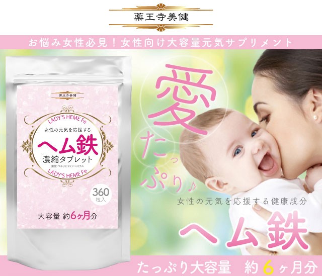 | 商品名 | 薬王寺美健 女性の元気を応援するヘム鉄濃縮タブレット大容量約6ヶ月分 |