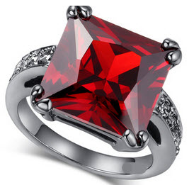 persegi kristal merah pistol hitam berlapis cincin dibuat dengan kristal Austria asli square red crystal ring plated black pistol made with genuine Austrian crystals FAS SJA3247238479 zy qty000