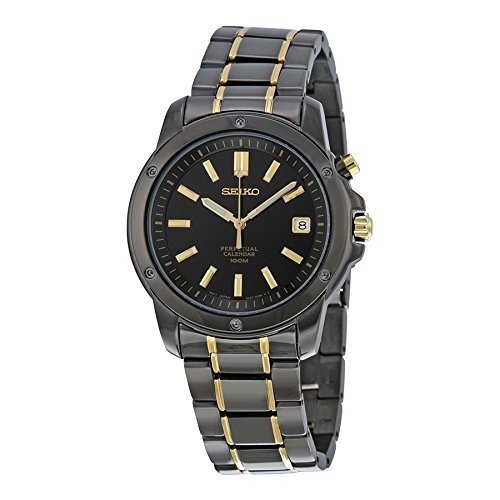 Seiko Men''s SNQ045 Perpetual Calendar Black Ion Watch