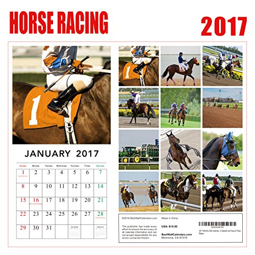 2017 Horse Racing Calendar - 12 x 12 Wall Calendar - 210 Free Reminder Stickers