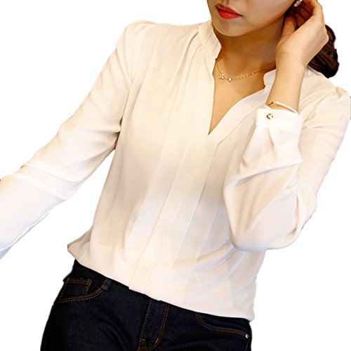 -. Title : (キャメロア) Cameloa ブラウス シャツ 長 袖 Vネック 無地 シフォン レディース ふんわり きれいめ 大人 オフィス シンプル