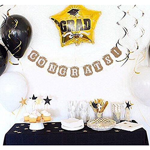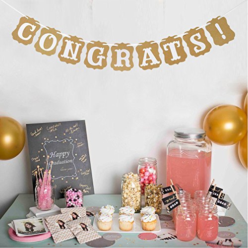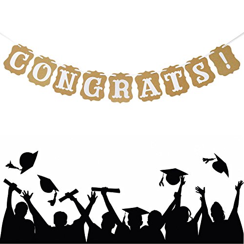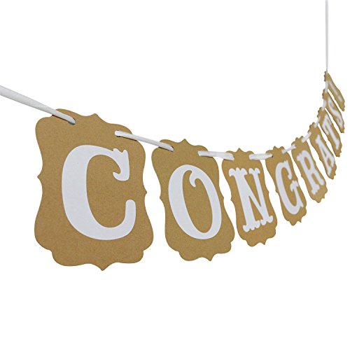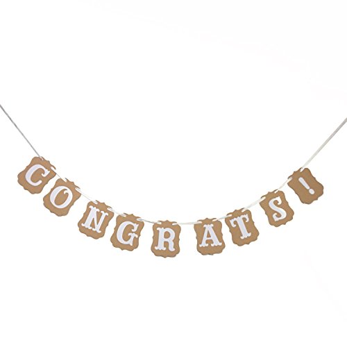 -. Feature : Congratulations on your graduation, wedding, new baby, retirement, or New Job, Birthday ,festival party and so on ,What better way to celebrate than with our premium quality rustic banner. This congratulations banner is perfect decoration to add a touch of classy decor and welcome your guests to your party. / Material: Kraft Paper and silk ribbon ,Each sign card measure: Approx. 13.5x 10cm , The ribbon is long enough to hang anywhere you want . / Easy to hang them on the wall, above the table, in the hallway and on the tree, etc. It comes with lots of string left over so you can tie it off easier wherever you need. / Notice: the old version of this banner comes to you with the cards and rope separately, and now we are upgrading to new version , the banner comes to you with all the letters pre- strung, just take it out, hang it, that's it ! / Our banners come with a 100% Satisfaction Guarantee. Get your money back if you are not happy with your purchase.