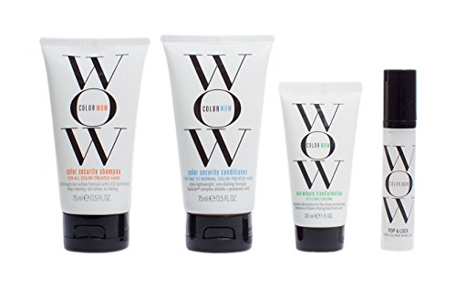 -. Feature : A 180 degree departure from typical color care products. Sulfate-free shampoo is also free of dulling, darkening residues: no silicones, no conditioning agents, no pearlizing agents that corrupt color. / Color Security conditioner delivers essential conditioning benefits without typical conditioning agents that can oxidize on the hair, corrupt the color and turn it brassy. / Applied to dried hair, One Minute Transformation styling cream instantly re-conditions and creates a smooth, polished surface in under 60 seconds. / Pop and Lock styling plus oil treatment "mash up" locks in color and creates epic shine. For use on wet or dry hair.