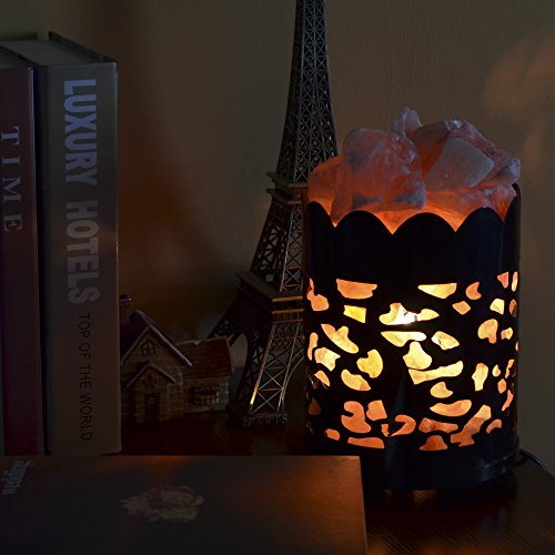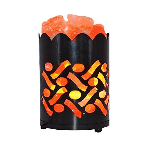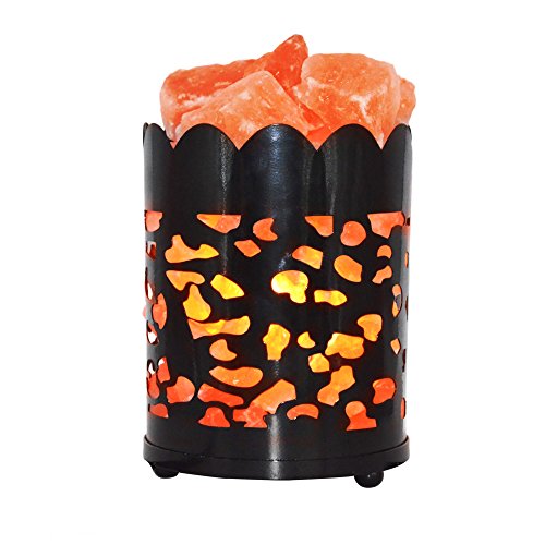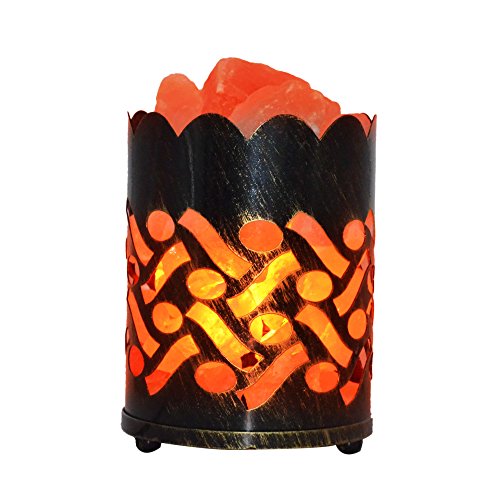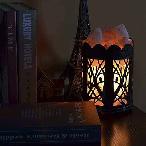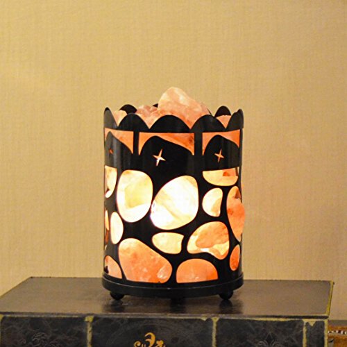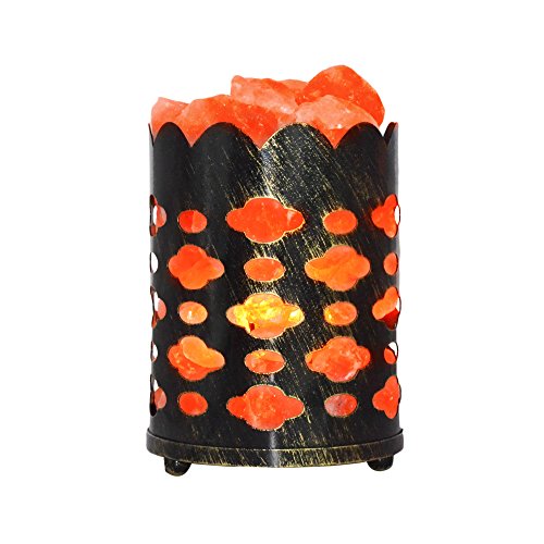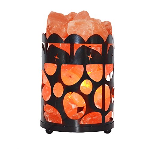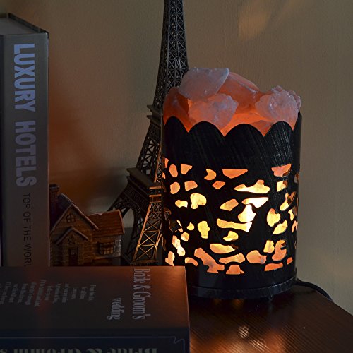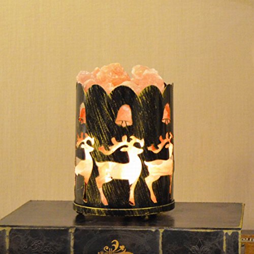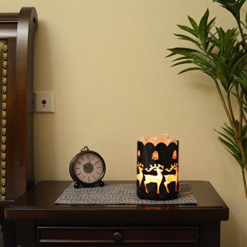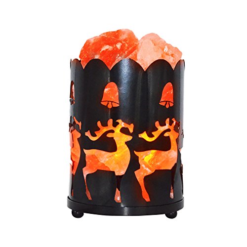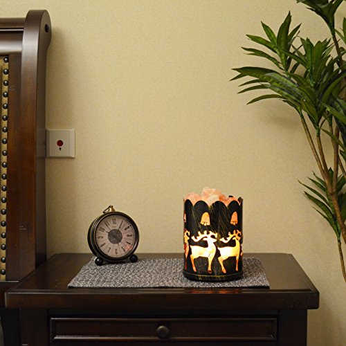 Maymii.Home 7" Himalayan Salt Crystal Table Desk Lamp Light Lights with Salt Chunks in Vintage Deer Patten Black Metal Basket Dimmer switch , Bulb Include For Bedroom, Living Room Kitchen