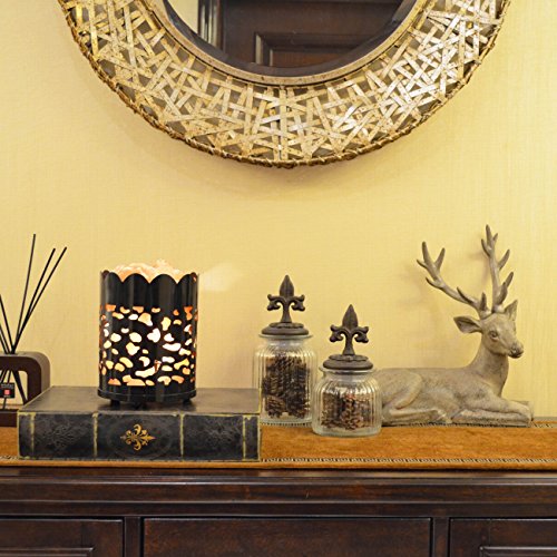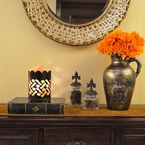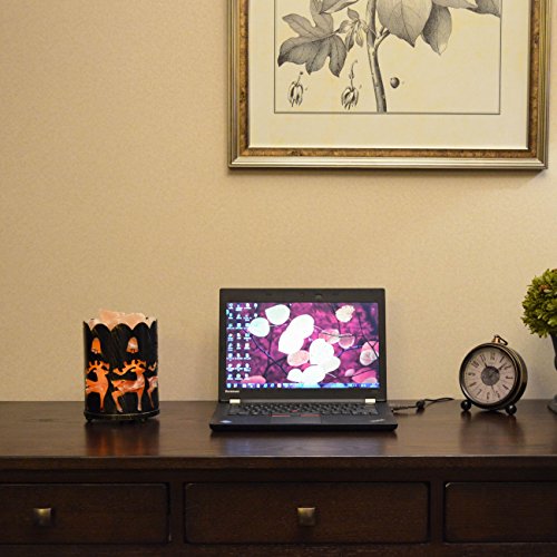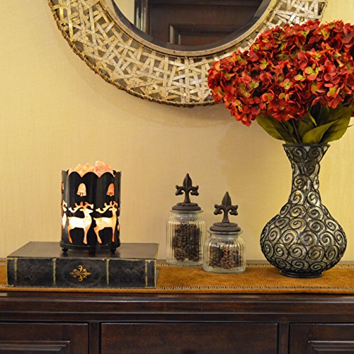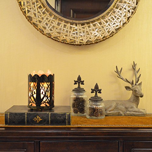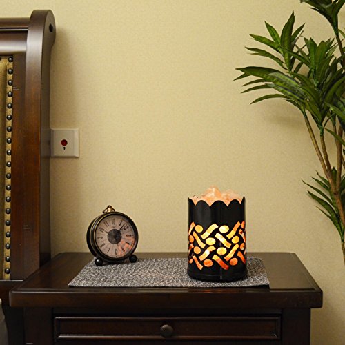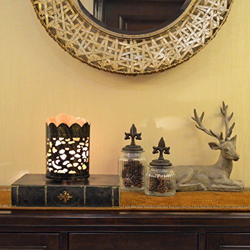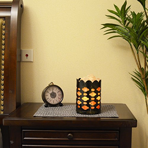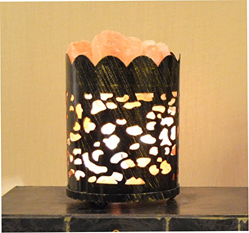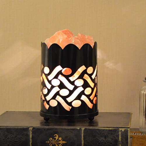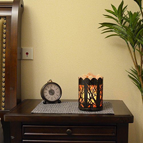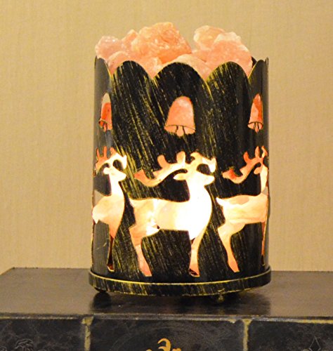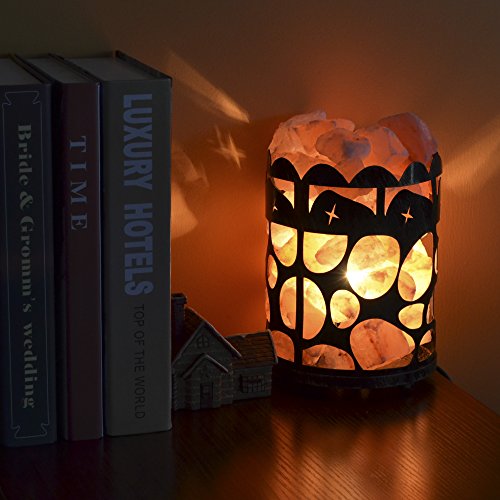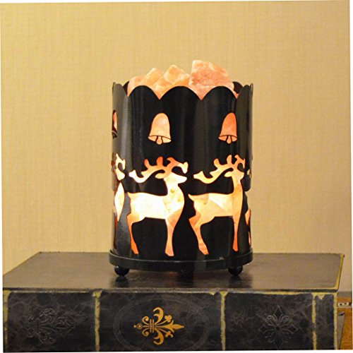 Maymii.Home 7" Himalayan Salt Crystal Table Desk Lamp Light Lights with Salt Chunks in Vintage Deer Patten Black Metal Basket Dimmer switch , Bulb Include For Bedroom, Living Room Kitchen