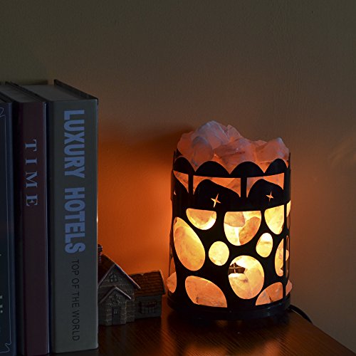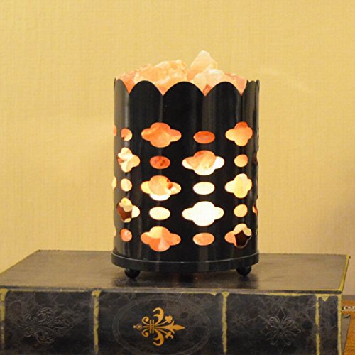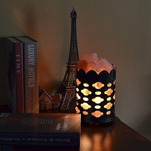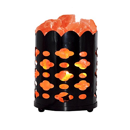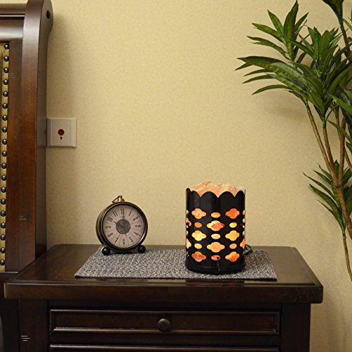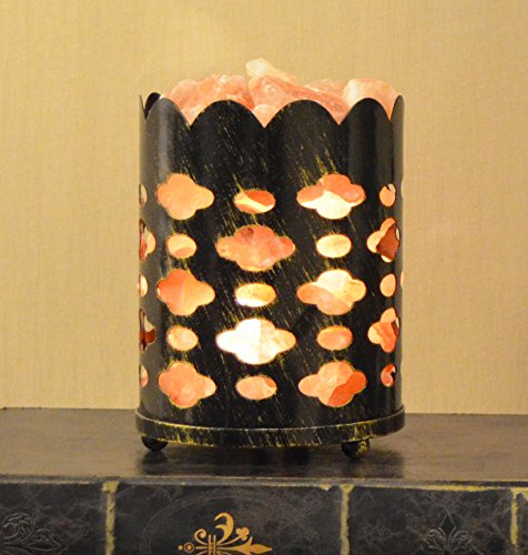 Maymii.Home 7" Himalayan Salt Crystal Table Desk Lamp Light Lights with Salt Chunks in Vintage Cloud Patten Black Metal Basket Dimmer switch , Bulb Include For Bedroom, Living Room Kitchen