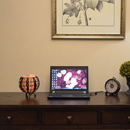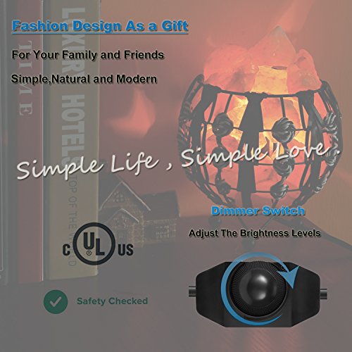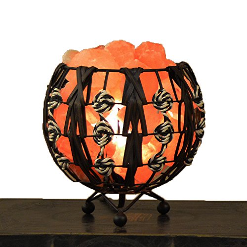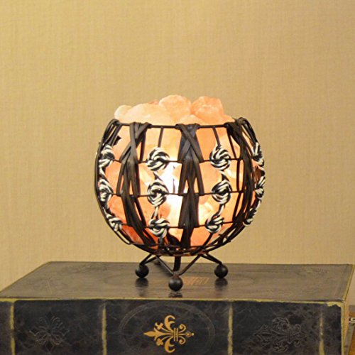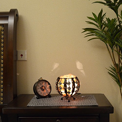 Maymii.Home Himalayan Salt Crystal Table Desk Lamp Light Lights with Salt Chunks in Ball Metal Basket Weave By PU Leather Dimmer switch , Bulb Include For Bedroom,Living Room Kitchen