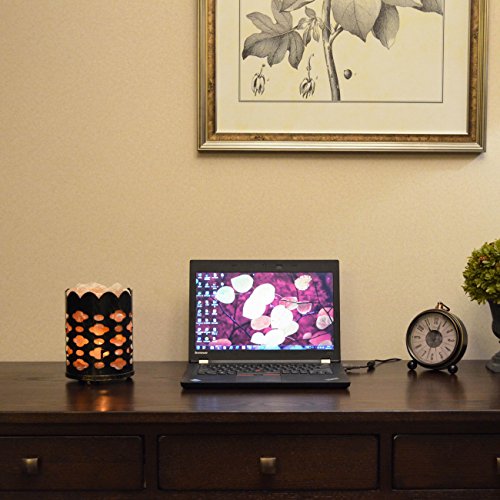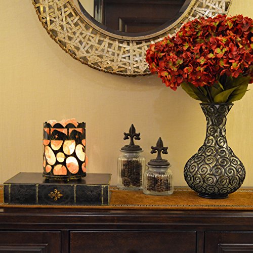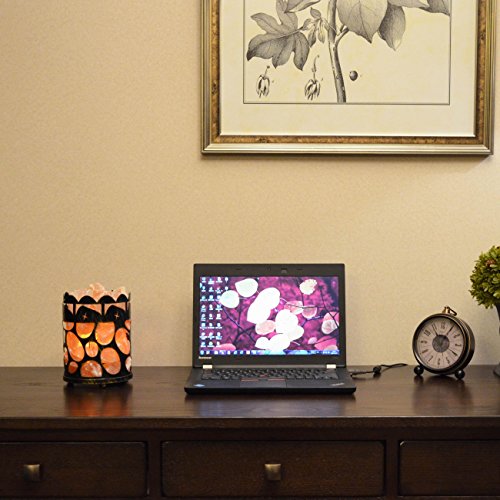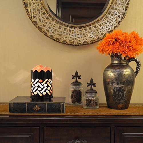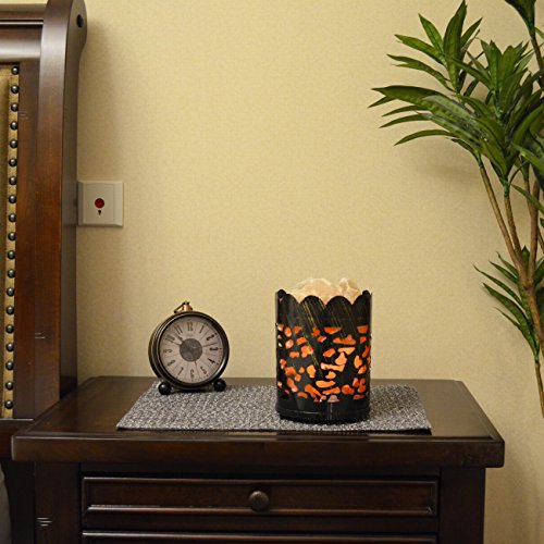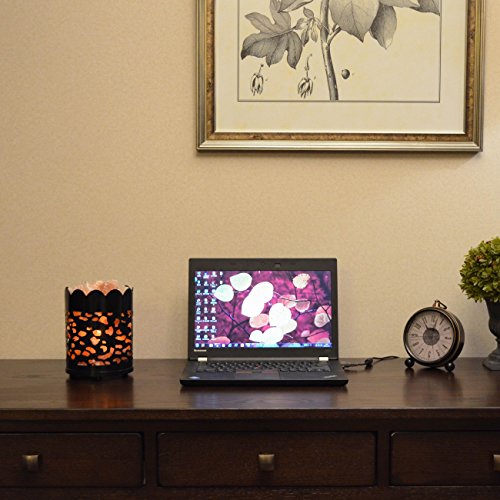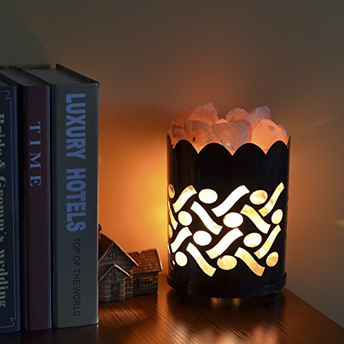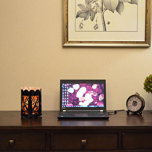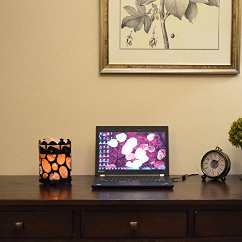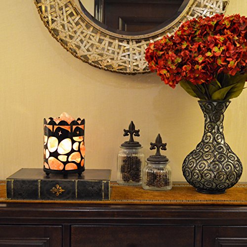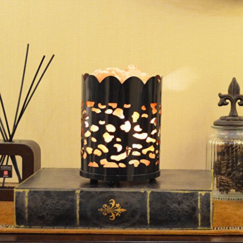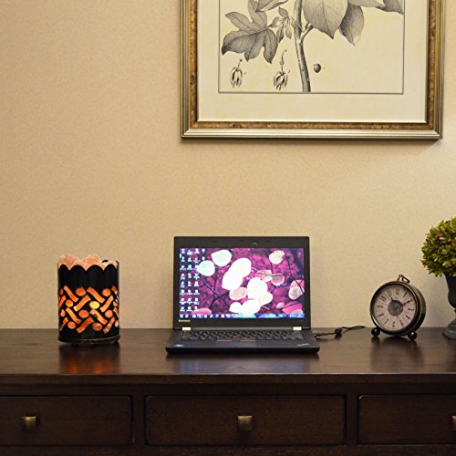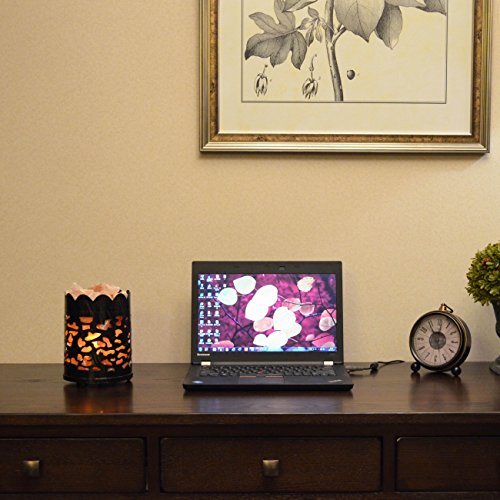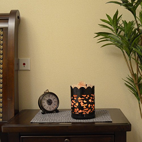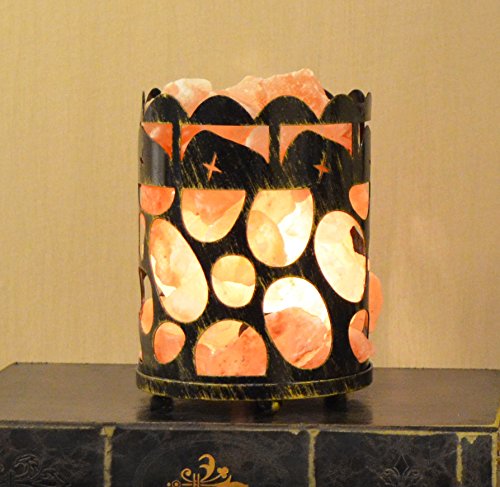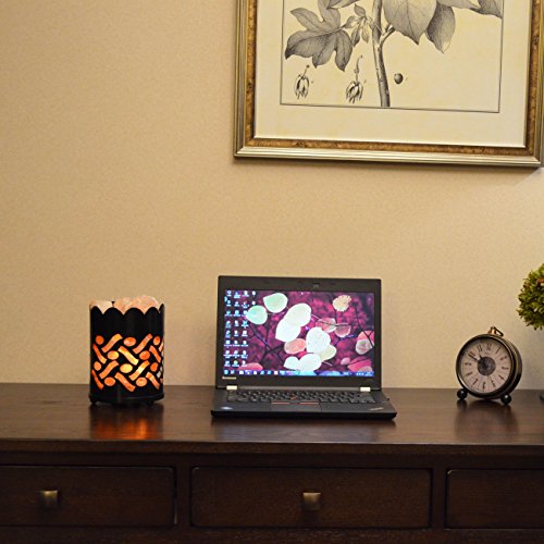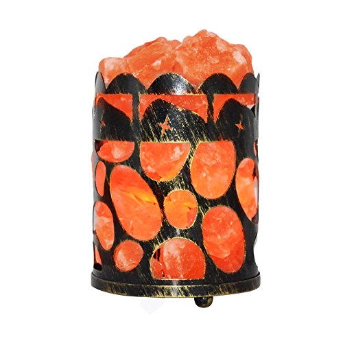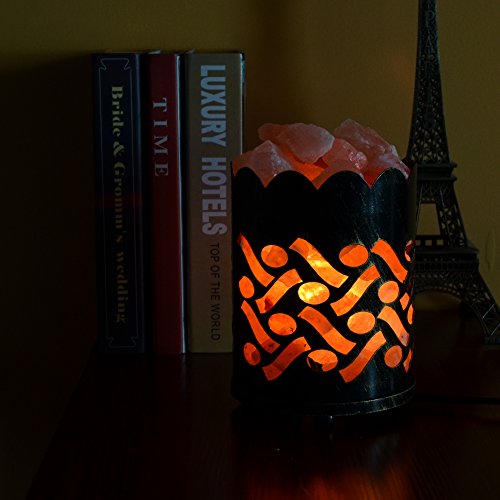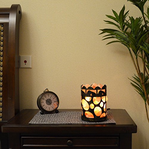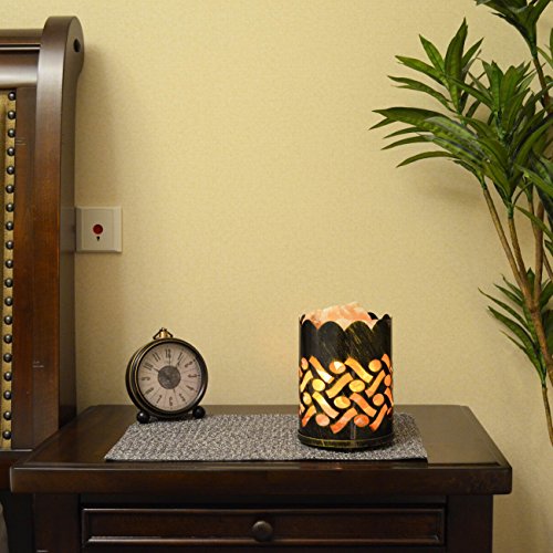 Maymii.Home 7" Himalayan Salt Crystal Table Desk Lamp Light Lights with Salt Chunks in Vintage Oval Patten Black Metal Basket Dimmer switch and Bulb Include For Bedroom, Living Room Kitchen