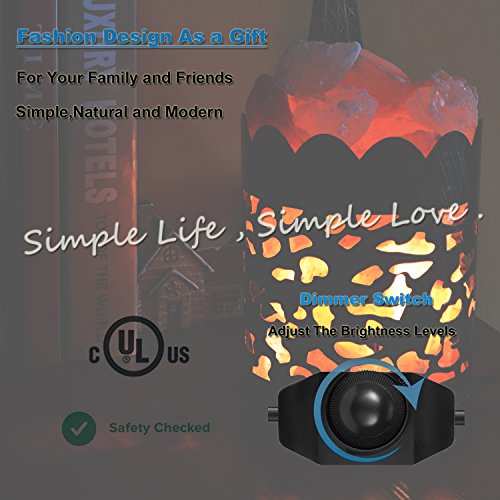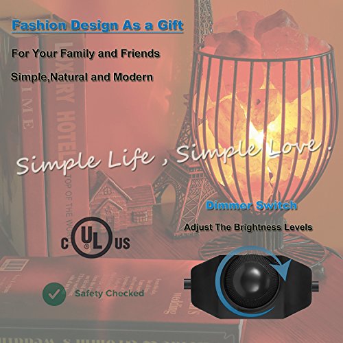 Maymii.Home 7" Himalayan Salt Crystal Table Desk Lamp Light Lights with Salt Chunks in Vintage Black Metal Basket Dimmer switch , Bulb Include For Bedroom, Living Room Kitchen