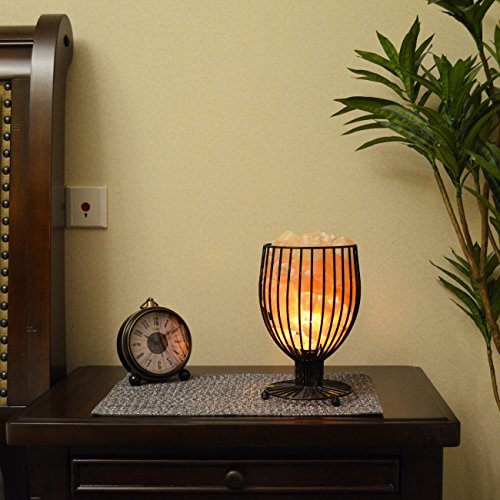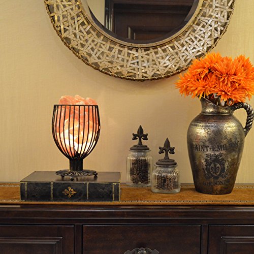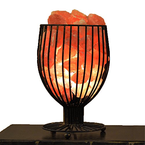 Maymii.Home 9.5" Wine Glass Design Himalayan Salt Crystal Table Desk Lamp Light Lights with Salt Chunks in Heavy Duty Metal Basket Dimmer switch , Bulb Include For Bedroom,Living Room Kitchen
