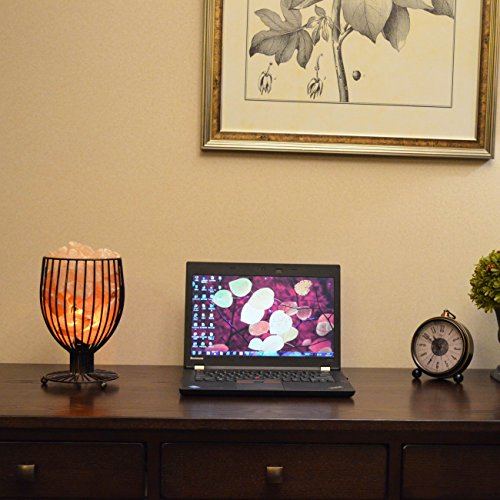 Maymii.Home 7" Unique Himalayan Salt Crystal Table Desk Lamp Light Lights with Salt Chunks in Vintage Black Metal Basket Dimmer switch and Bulb Include For Bedroom, Living Room Kitchen