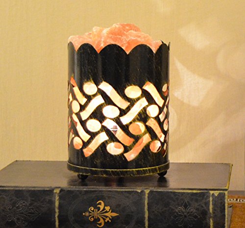 Maymii.Home 7" Himalayan Salt Crystal Table Desk Lamp Light Lights with Salt Chunks in Vintage Oval Patten Black Gold Metal Basket Dimmer switch , Bulb Include For Bedroom, Living Room Kitchen