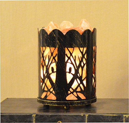 Maymii•Home 7" Unique Tree&Brid Design Natural Himalayan Salt Crystal Table Desk Lamp Light Lights with Salt Chunks in Vintage Gold Black Metal Basket Dimmer switch and Bulb Include