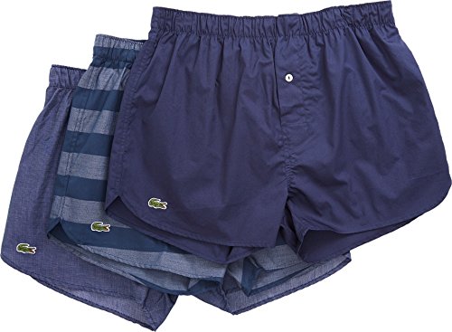 Lacoste Men's 3 Pack Woven Boxer, Nvst/Cnb/Ltblst, Large