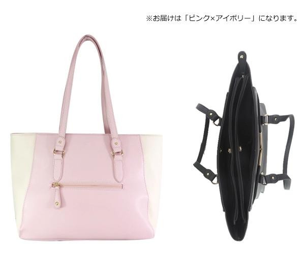 | V金具がポイントの、オシャレなトートバッグです。内側が3層になっており、持ち物の整理がしやすくなっています。 |