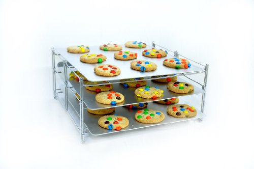 The Nifty 3-in-1 Oven Rack saves precious time when baking your favorite treats. The unique three tier design allows you to bake up to 4 layers of cookies or pizzas at the same time. The Nifty 3-in-1 Oven Rack also folds flat for easy storage.