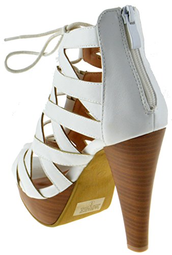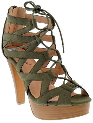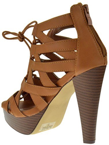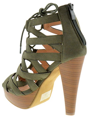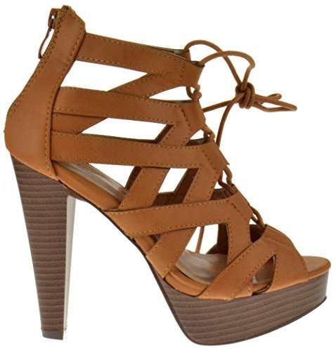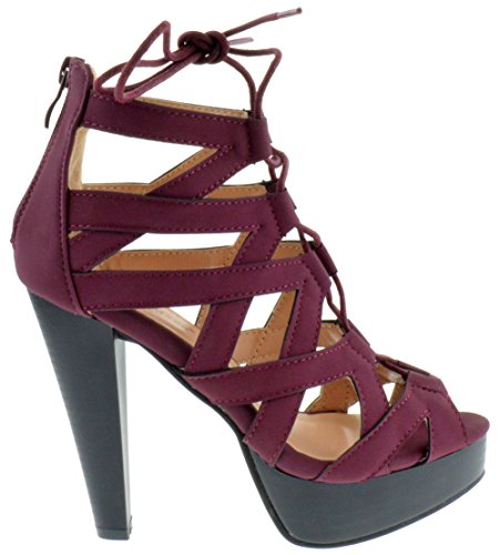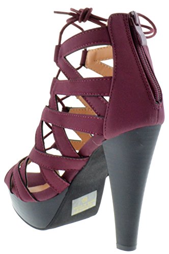 Top Moda Table 8 Peep Toe High Heel Lace Up Strappy Pumps