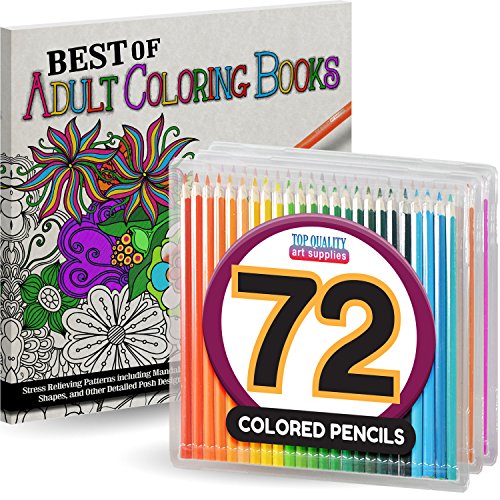Adult Coloring Book Set (72 COLORED PENCILS INCLUDED) - Perfect for Men, Women, and Children - Stress Relieving Patterns, Animals, Mandalas, and More