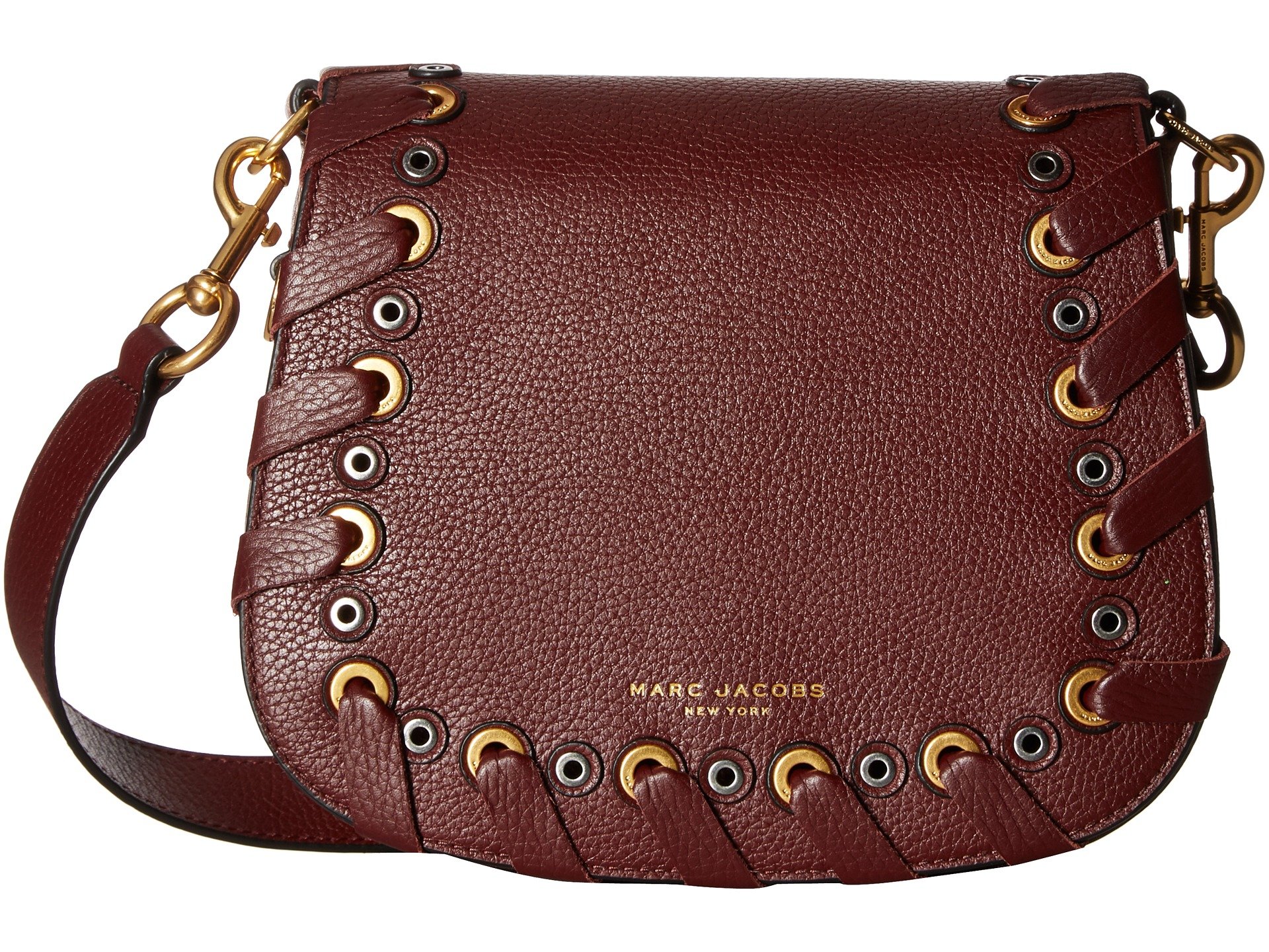 | Product Information SKU: #8822306Get the Marc Jacobs™Grommet Small Nomad and have a classic look of elegance with edge. Convertible bag made of leather.Fold-over flap with magnetic snap closure.Grommet accents inner-locked with slender leather straps. Removable and adjustable crossbody shoulder strap. Rear external slip pocket. Brand name embossed at front. Flat base to provide upright structure. Leather lined interior features back-wall zipper pocket and two internal slide pockets. Imported. This item may ship with an attached security tag. Merchandise returned without the original security tag attached or a damaged tag may not qualify for a refund.This product may have a manufacturer's warranty. Please visit the manufacturer's website or contact us at warranty@support.zappos.com for full manufacturer warranty details.Measurements: Bottom Width: 8 1?2 in Depth: 2 1?2 in Height: 8 in Strap Length: 45 in Strap Drop: 22 in Weight: 1 lb 6 oz |