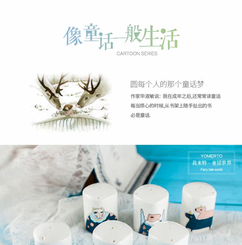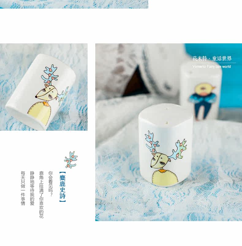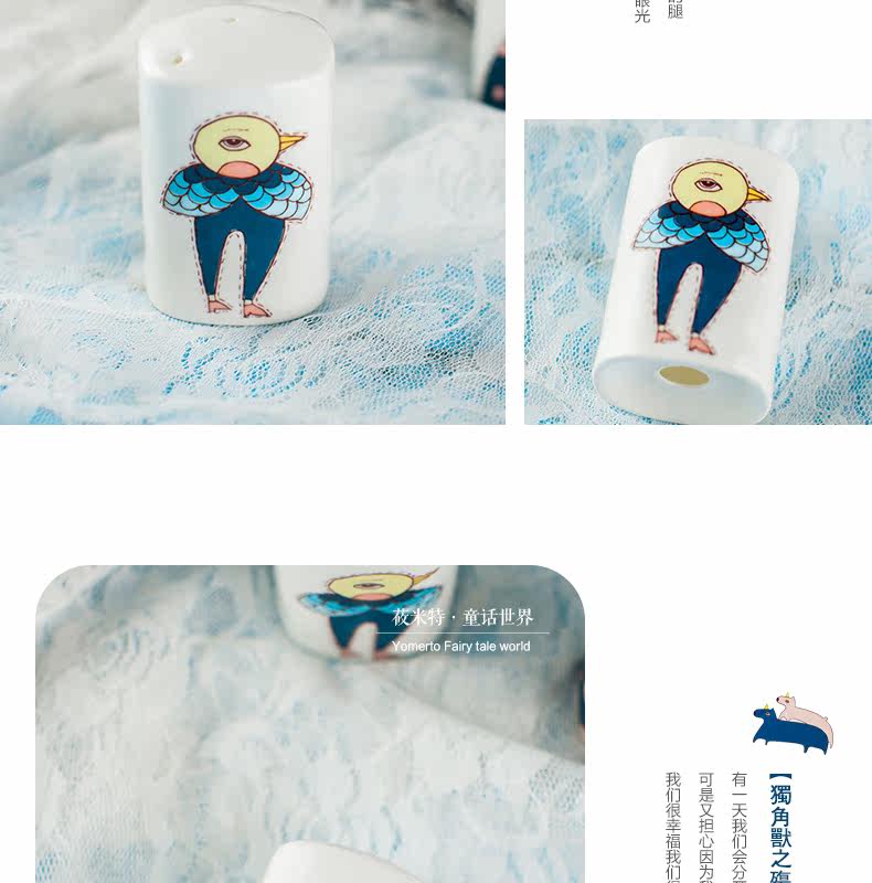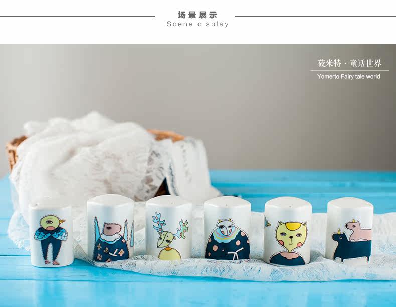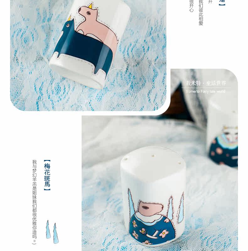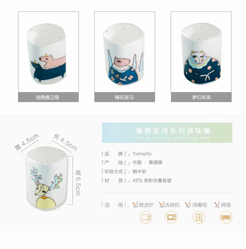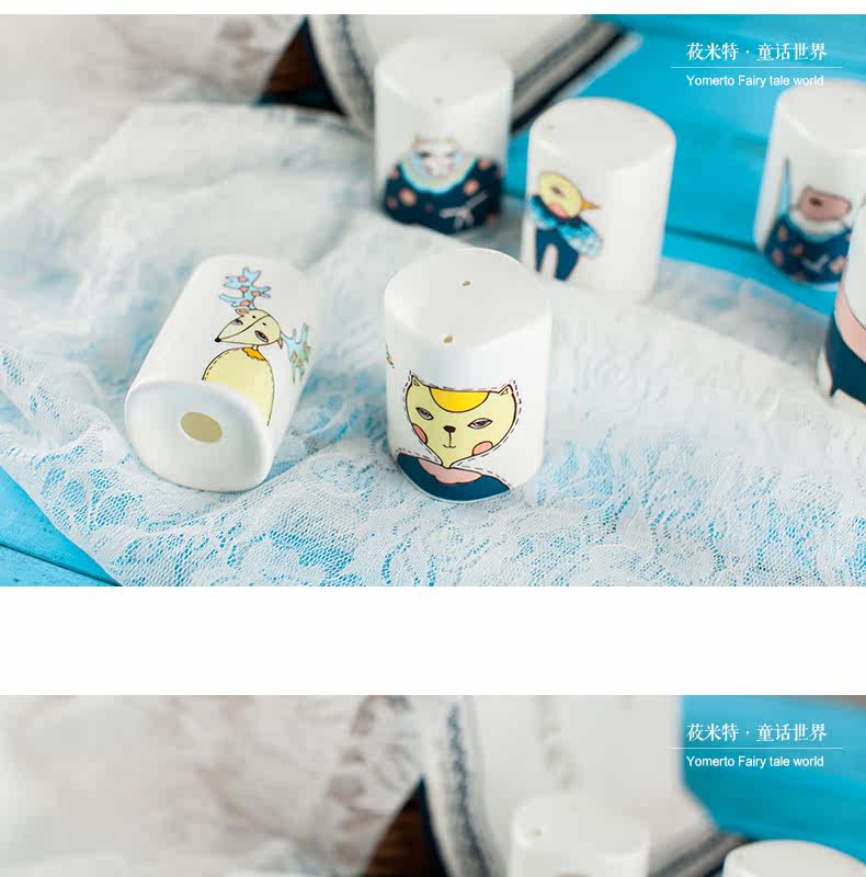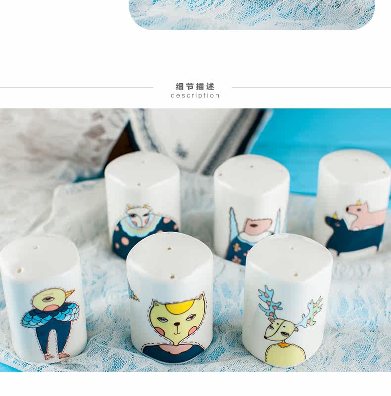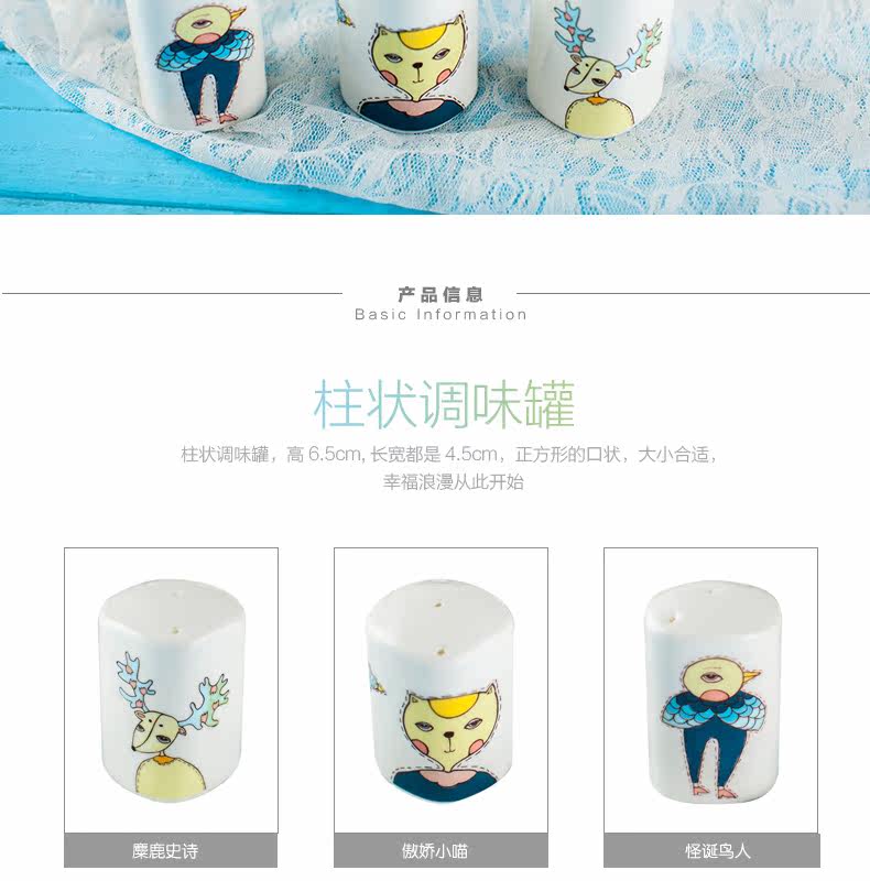 景德镇卡通可爱骨瓷调料瓶罐子 柱形有孔盖 胡椒粉瓶子家用佐料罐