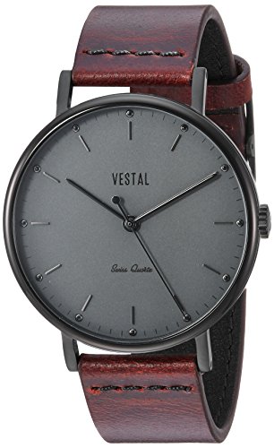 Vestal 'Sophisticate' Swiss Quartz Stainless Steel and Leather Dress Watch, Color:Brown (Model: SP42L09.CVBK)