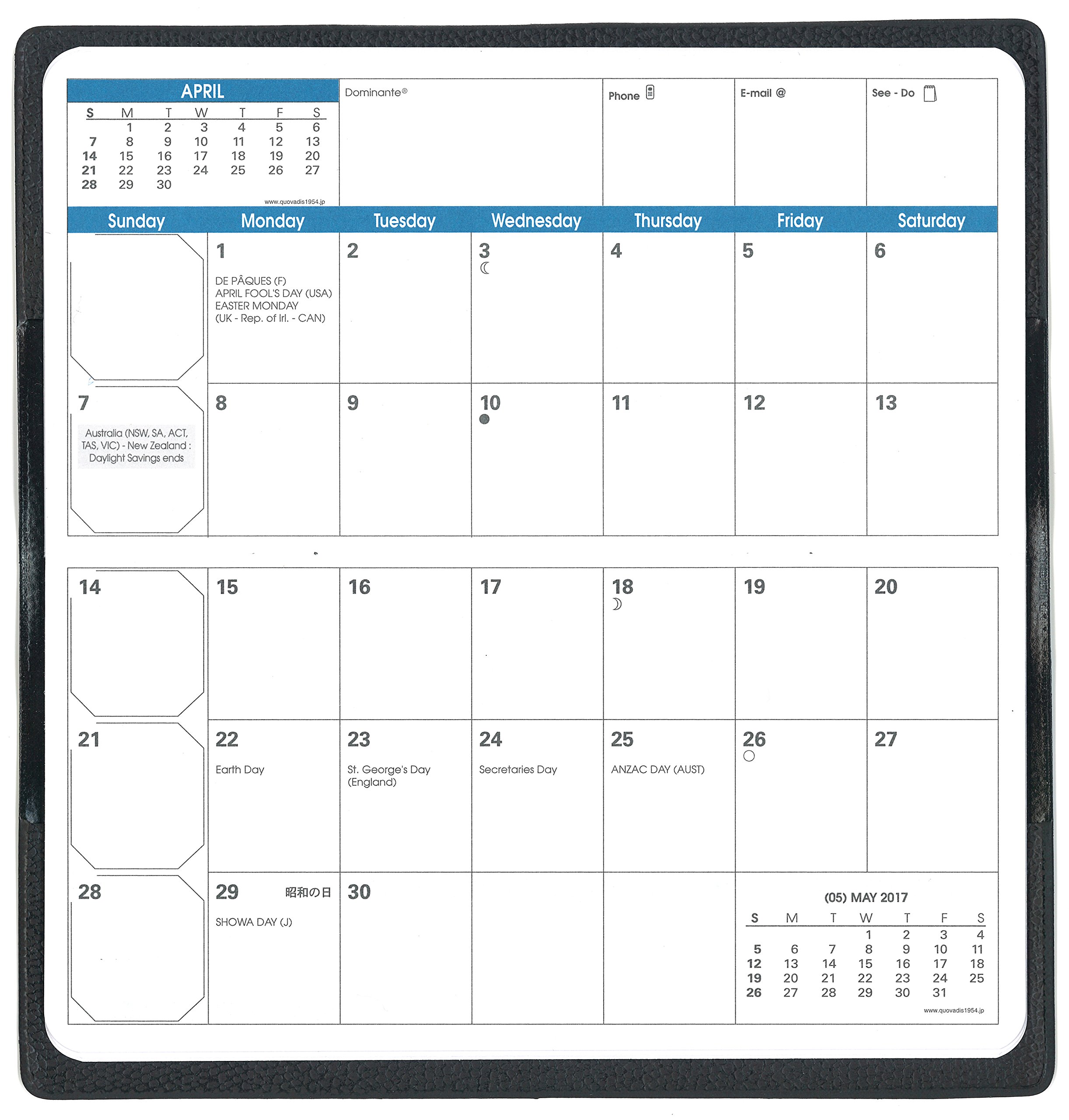 Thin type diary which can be used for a wide range of applications, such as sub-diary and private use to confirm the schedule by overhead view as well as the main use.